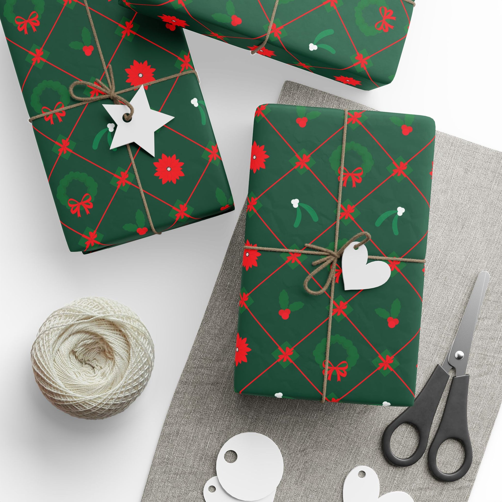 The Christmas Foliage wrapping paper has the classic Christmas colorway: red, green, and winter white. The pattern features Christmas wreaths, mistletoe, holly, poinsettias, and presents wrapped in big red bows. This print offers a festive, botanical wrap for your gifts to celebrate the season. Enjoy wrapping your presents with this high-quality 90gsm fine-art wrapping papers. Available in 3x sizes for you to match all your wrapping needs. These wrapping papers come with a matte or glossy finish and feature a high-definition print. Paper comes neatly rolled up for an excellent delivery experience.